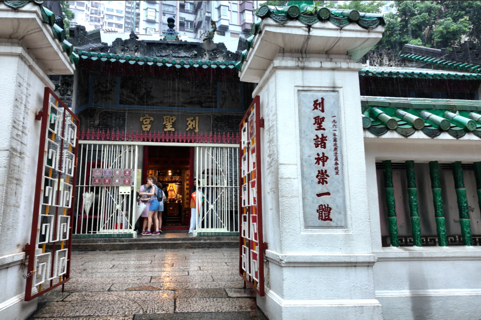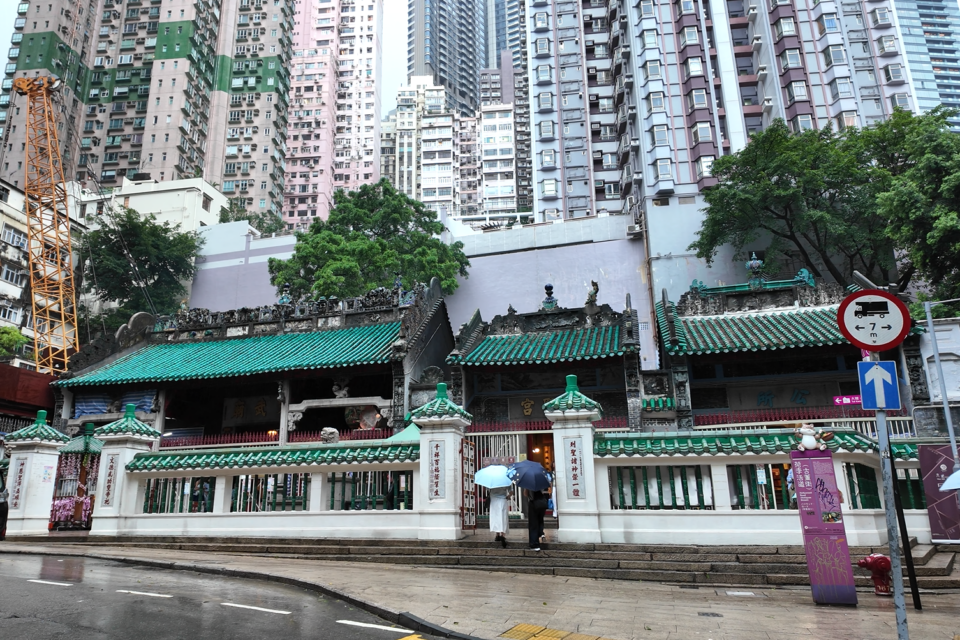 近くに文武廟 (Man Mo Temple)があったので立ち寄ってみる。1800 年代に建立された歴史ある寺院。内部を見学してみたかったけど、雨が強まってきたので外観のみ撮影。