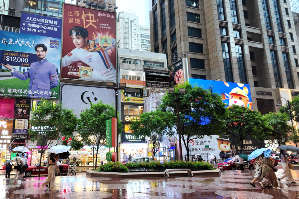 何か食べに行こうかな、ということで昨日も訪れた賑やかな街、銅鑼湾(Causeway Bay コーズベイウェイ)へ。まだ雨が止む気配なし。