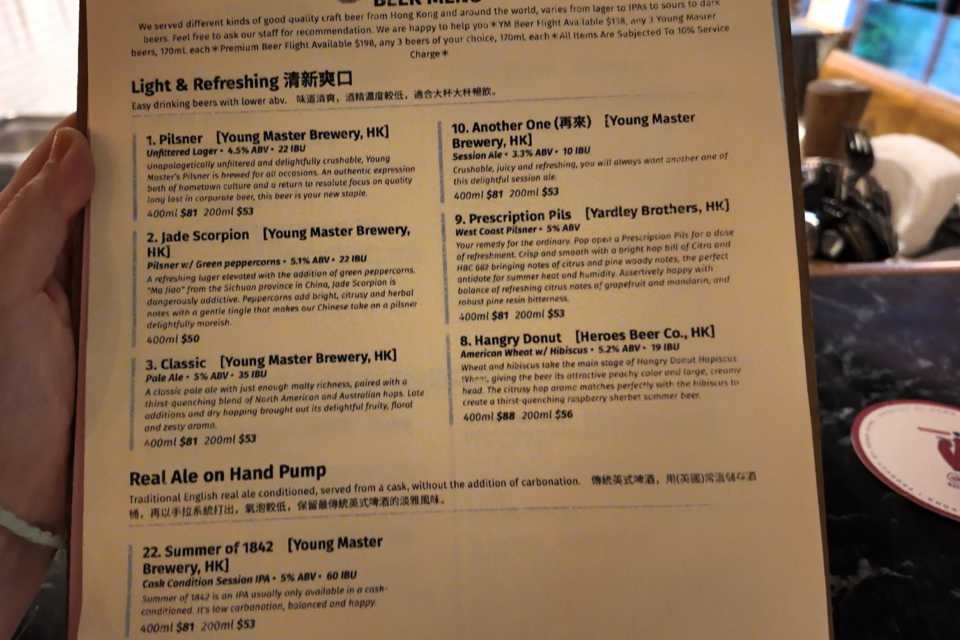 香港を代表するクラフトビールブランドYoung Master Brewery がプロデュースしているお店。